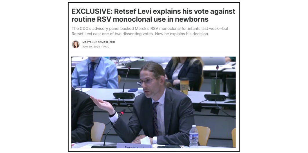 He also raised concerns about the safety of RSV monoclonal antibodies after clinical trials showed a clear imbalance in infant deaths.