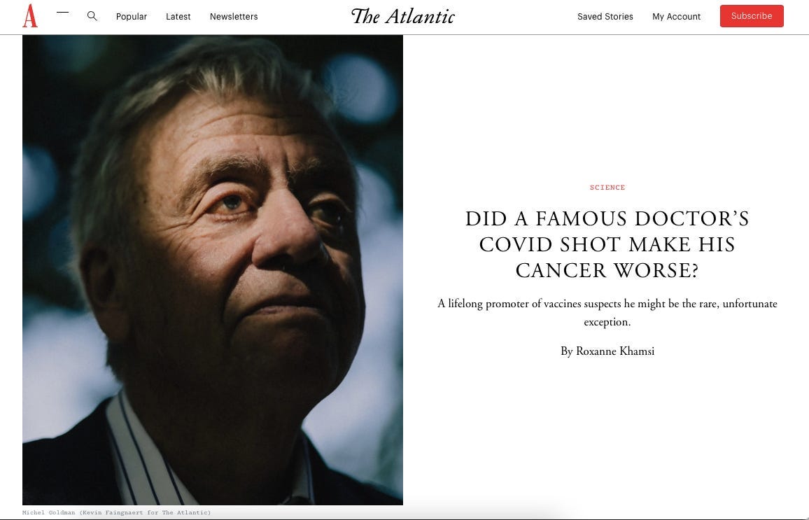 One of the first to speak publicly was Belgian immunologist Michel Goldman, whose story was published in The Atlantic in 2022. He believed the Covid-19 vaccine may have accelerated his lymphoma.