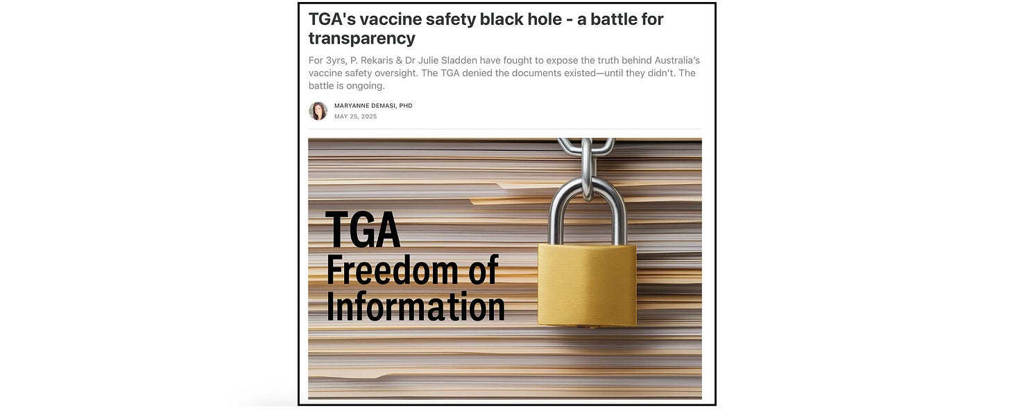 We first reported on this issue in May 2025. When Australia rolled out COVID-19 vaccines, Australia’s drug regulator, the Therapeutic Goods Administration (TGA) promised enhanced safety monitoring.