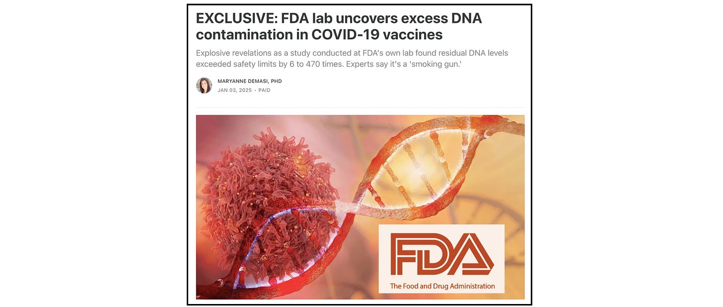In January 2025, students working in the FDA’s own laboratory detected DNA contamination in Pfizer’s product ranging from six to 470 times above regulatory limits.